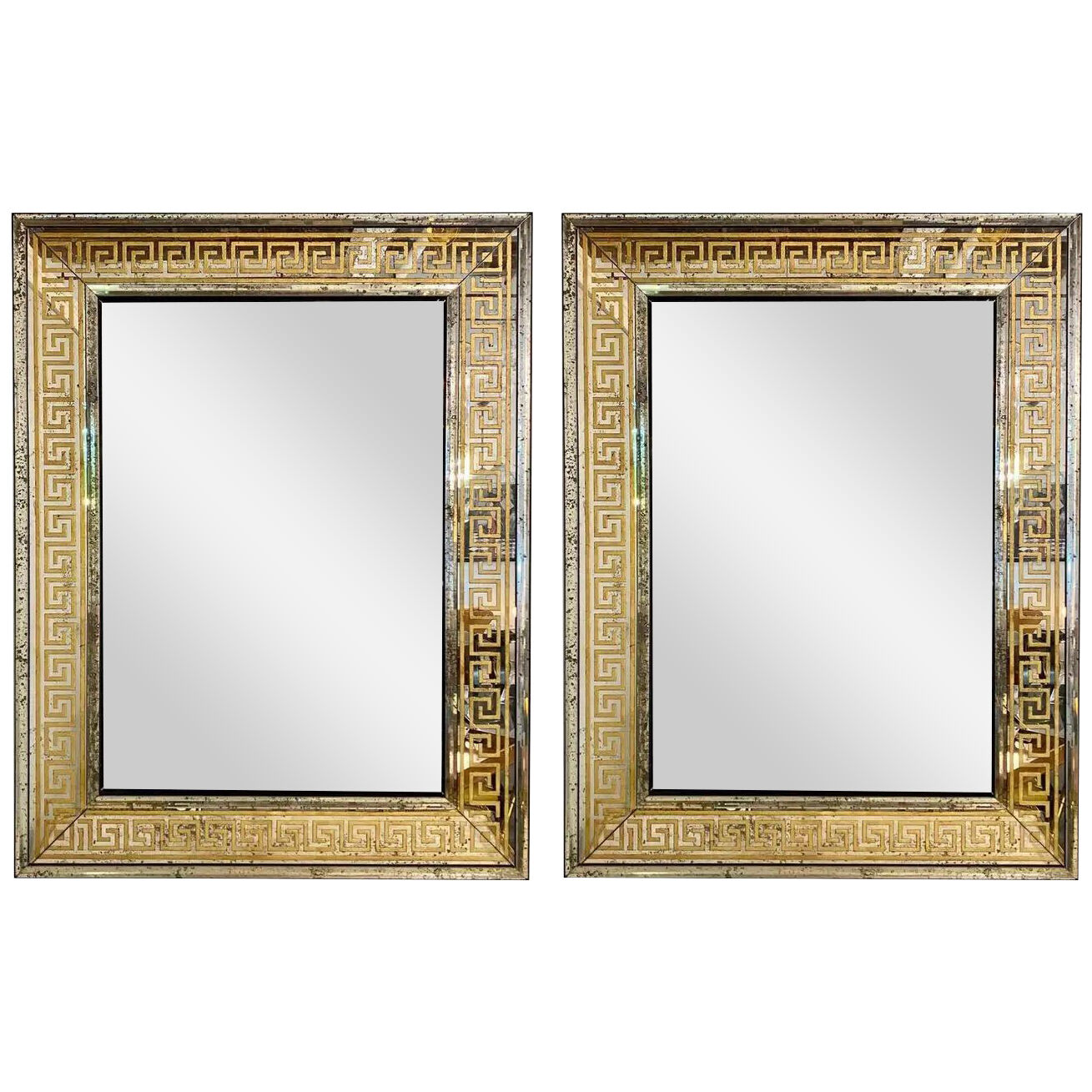 Shimmering Venetian Beveled Glass Mirror with Etched Details + Pediment Top